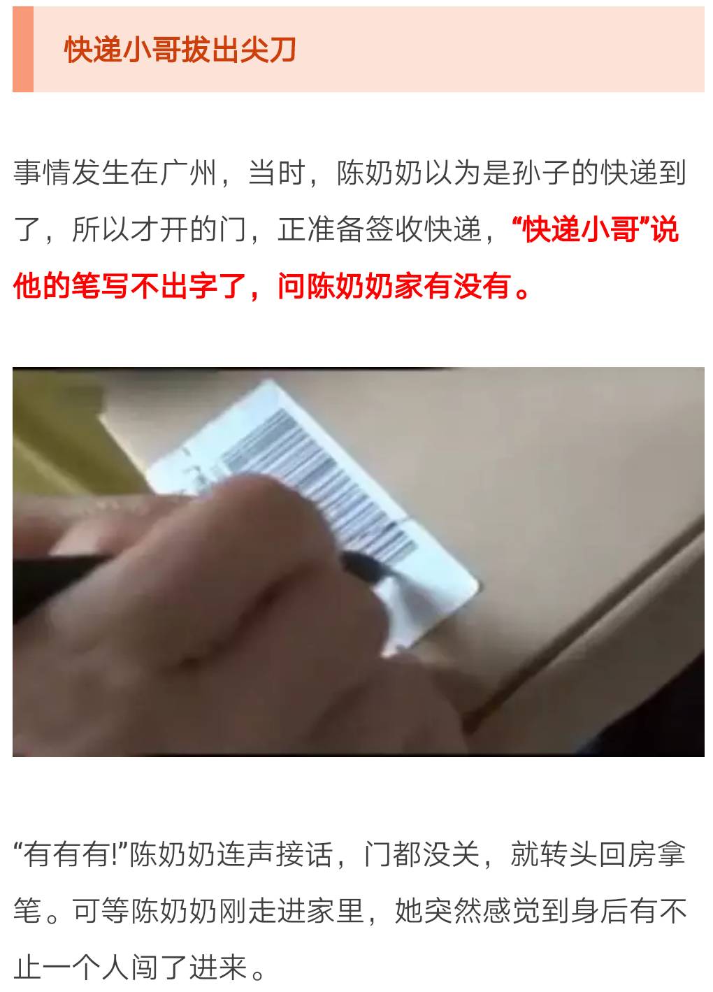 “你好,我是送快递的……”70多岁的陈奶奶特地透过猫眼一望,门外的男子手上拿着快递,陈奶奶赶紧开门收件哪晓得,这门一开恐怖的事情发生了……