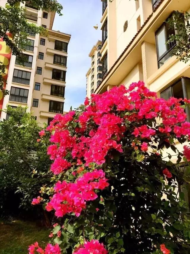 衍宏·海港小镇一派浓郁的热带雨林风情。满园的棕榈树、椰子树等热带绿植茂密丛生,四季葱绿。三角梅花开正艳,繁花似锦、飞红溢翠,让您身临其境般置身神奇的热带植物园。