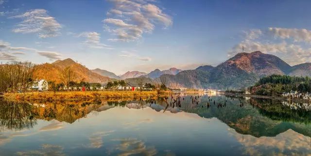 在储家滩,几间粉墙黛瓦的徽派老屋静静的伫立于碧水蓝天间,蓝蓝的天空透明而清澈,游云浮动在广阔平静的苍穹之上,一朵一朵自由的记录着村庄宁静的美。