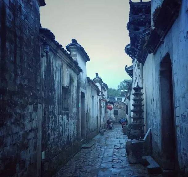 青石板铺成的街道两侧,青砖、黛瓦、木檐、马头墙,与光溜溜的青石板街道路面相映成趣,更显盎然古意和徽风皖韵。
