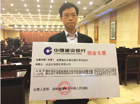 “作为券商,我被法官的专业和公正敬业所折服。”在昨日的兑现大会现场,兴业证券股份有限公司总经理许清春领回了15659万余元的执行款项。
