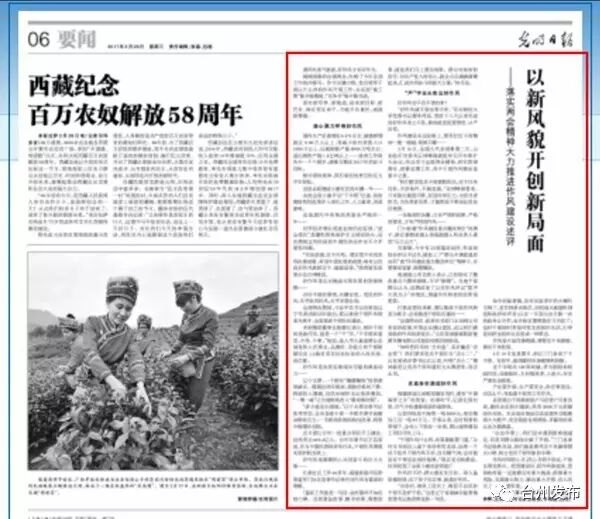3月29日,新华每日电讯、光明日报、重庆日报、广西日报、辽宁日报、内蒙古日报、、:《以新风貌开创新局面——落实精神大力推进作风建设述评》。