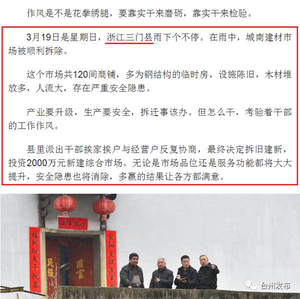 3月19日是星期日,浙江三门县雨下个不停。在雨中,城南建材市场被顺利拆除。这个市场共120间商铺,多为钢结构的临时房,设施陈旧,木材堆放多,人流大,存在严重安全隐患。