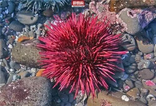 红海胆又名巨紫球海胆,只能在太平洋中发现它们的踪影,主要生活在北美的西海岸沿岸。