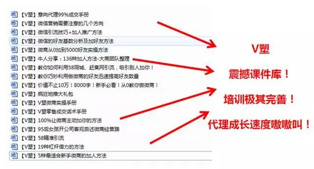 目前,杨晶晶已经完成强大培训体系的建立,还为代理贴心的撰写了整套销售秘笈,比如:《V塑微商实操手册》、《V塑零售成交话术手册》、《意向代理99%成交手册》、《疯狂地推大礼包》等。小白代理一进来,这些统统免费送!掌握这些秘笈,7天就能卖出货收到钱,3个月实现月入几万甚至十几万的目标!