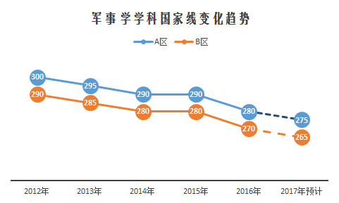 根据往年分数线以及影响分数线变化的原因综合预测,今年军事学学科A区分数线为275左右,B区分数线为265左右。