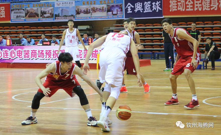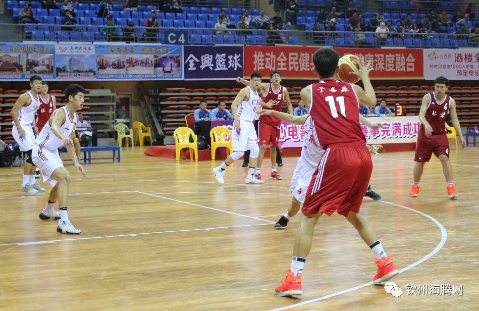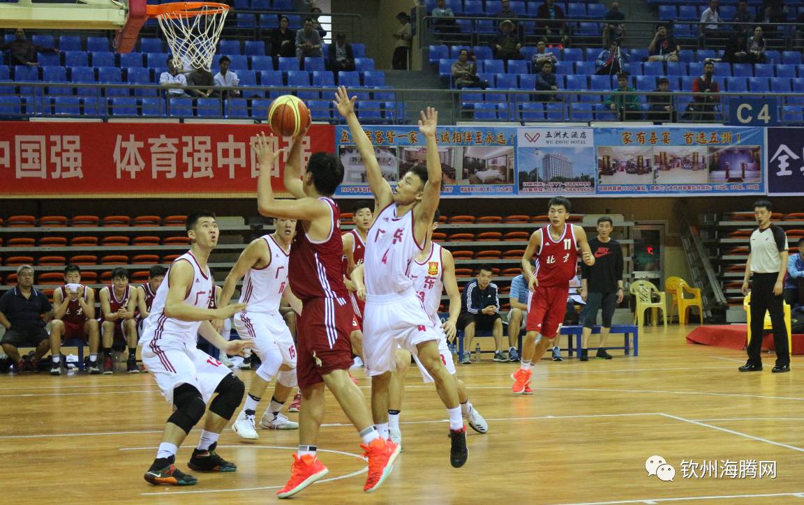 北京时间4月5日下午15:00,钦州市体育中心体育馆进行《“体彩杯”第十三届全国运动会篮球预赛》,对战的是广东队VS北京队。白队为广东队,红队北京队。