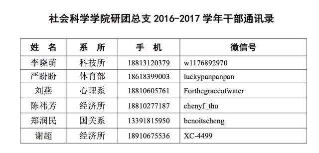 首页 | 母婴百科 | 社科研(颜)团,招新纳贤! 社科研(颜)团,招新纳贤! 2023-04-19 23:50:29 社科研团招新纳贤改革创新发扬传统 以人为本简介清华大学社会科学学院研究生团总支(简称“社科研团”)是清华大学研究生委员会在我院的基层团组织。社科研团秉承“以人为本、发扬传统、改革创新”的理念,旨在促进学院人才培养、服务广大研究生学习生活。社科研团是清华大学研究生总支部的一支力量,主要负责社科学院研究生团日活动、社会实践、就业引导、职业素质拓展、志愿服务、联络调研以及对研究生活动宣传报道等工作。下设部门往期精彩优质资源先知先觉先行美国前劳工部长赵小兰一家来清讲座参观国家发改委国际合作中心知行合一双脚丈量中国社科学院师生赴浙江省金华市金东区实践调研赴贵州黔南自治州惠水县开展支教和精准扶贫调研赴广西柳州鹿寨县调研实践志愿服务奉献温暖人心每周一、三打工子弟学校支教,风雨无阻社科学院“第一次”献血活动给大山的孩子送几本好书和旧物捐赠活动就业引导为职场做准备举办选调生政策与形势报告会协办由清华大学学生职业发展指导中心主任林成涛主讲的《迈向职场,走好你的第一步!》举办“清北人”三校基层就业年会暨联谊舞会 MORE报名方式 1. 填写新生入学报到时发放的研团报名表进行报名: 2. 扫二维码或点击文末左下方“阅读原文”填写电子问卷报名表报名; 3. 根据研团公邮(shekeyanjiusheng@163.com)发送的报名邮件,填写电子版报名表进行报名; 4. 以上报名方式任选其一即可。任何困难与疑问请联系⬆️期待你的加入!社 科 研 团2016年8月
