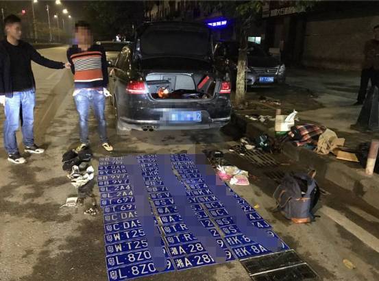 6、号称千里不留痕、天大地大任我行的三人抢劫团伙成员被一窝端。经查,犯罪嫌疑男子分别为:梁某耀、梁某、梁某瑜,广西兴业人,民警在其驾驶的轿车上缴获作案用假车牌27套及其他物件一批。经审讯,破获抢劫案件多起。