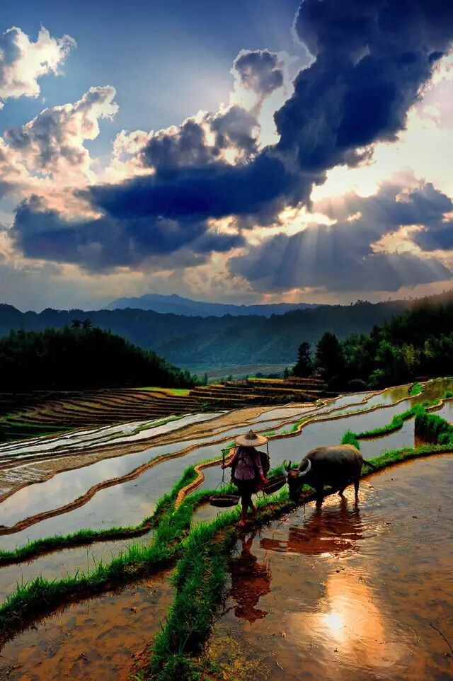 5—7月:正值欧家梯田春耕时节,梯田上的耕犁开始忙碌起来,梯田犹如一片片明镜,映衬着每一天“不同的”朝霞与夕阳,形成一个色彩斑斓的天堂。