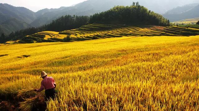 9—11月:正值欧家梯田收获的季节,沉甸甸地稻穗在风中摇曳,梯田上翻滚着金色的稻浪,蔚为大观。