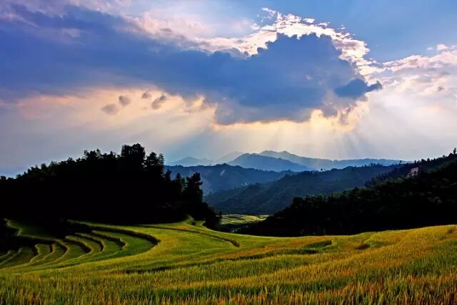 7—8月:正值欧家梯田的稼禾吐翠的时节,雨水充沛,云雾缭绕。更像画家笔下的山水国画,充满诗意。
