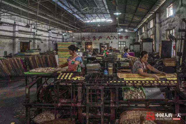 这是位于敦化市大石头镇的延边吉星火柴厂(原延边火柴厂)。老旧的车间里仍然是传统的设备,厂房内还留有1970年代的标语,工人还延续着传统的制作工序……