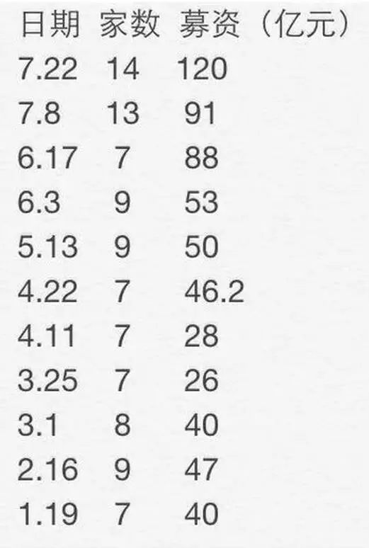 其实早在7月8日,证监会还向13家公司发放了IPO批文,募集资金一共大约91亿元。也就是说,7月份一共放出来了27家新股,募集资金共计210亿元左右。