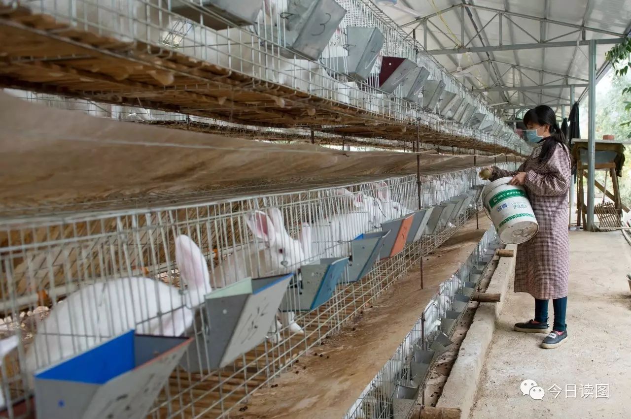 广西田东县祥周镇垌群村地处大石山区,发展项目受到地域的限制,村民们集思广益发展经济,创办养兔场。这家养兔场由三户农户组成,共养兔子3000多只。成品兔已销往县内外,成为当地农民增收的重要途径之一。 (谢佩霞 摄)