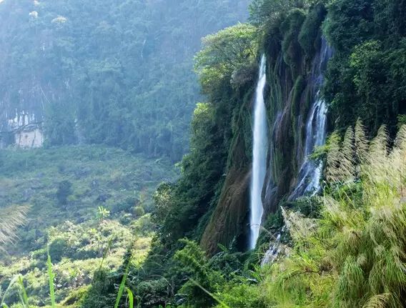 爱布瀑布群由爱布、马屯、惠泽三个秀丽壮观、形状各异的大瀑布聚集而成,由于地势多变、地形落差大,滩多水急,在爱布一带沿河形成了许多大大小小的瀑布群。