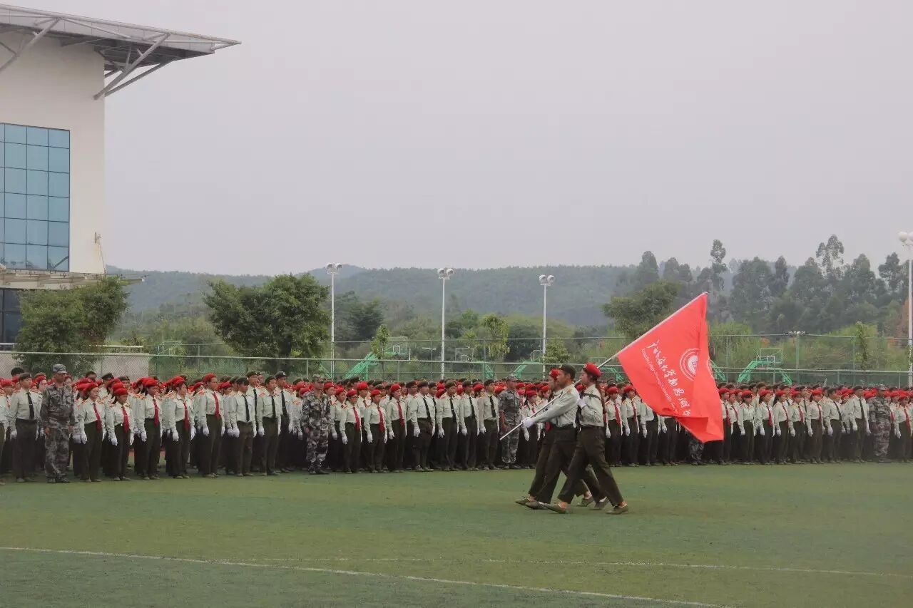 新生军训汇报表演在庄严的国歌声中拉开帷幕,首先进行的是迎院旗,紧接着农院长在军训教官的陪同下检阅了新生军训队伍。