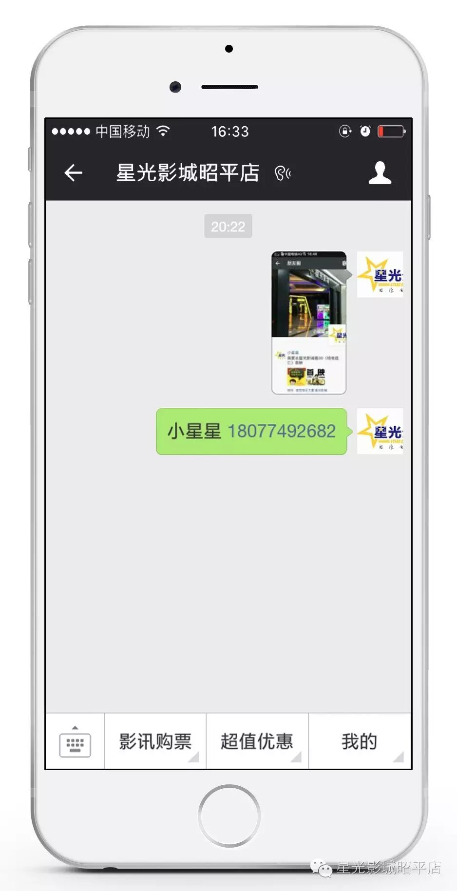 分享到朋友圈后截图,回到星光影城公众号,发送截图和你的姓名+联系方式到公众号(这步很重要,资料不全无效)。