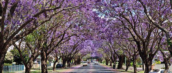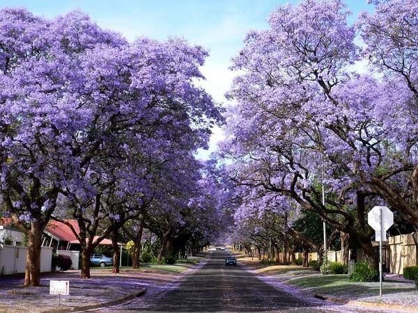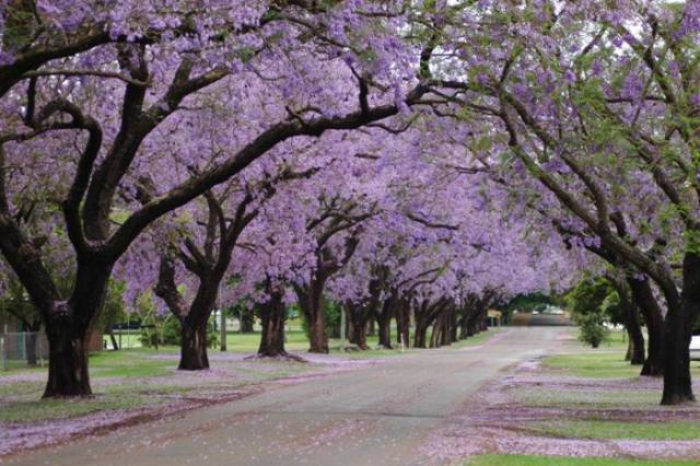 满城漫山的紫色花海 – 蓝楹花Jacaranda,梦幻程度足以媲美日本樱花啊!不过奇怪的是,这蓝花楹并非名字般呈蓝,花瓣乃是紫色的。