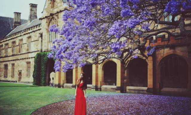 有趣的是蓝楹花又被称为“Purple Panic”或“考试树Exam Tree”!因为在盛开时约为10月-11月,这也正是澳洲学生考期或交报告的截止期,所以许多临时抱佛脚一族在看到这蓝花楹绽放前,是不会好好开始读书的!另一传说是,在考试期间被掉落的花瓣砸到,下一门考试定会不及格。但是,若你在它再次掉落着地之前接住它,就能打破这一厄运,使考试顺利通过。