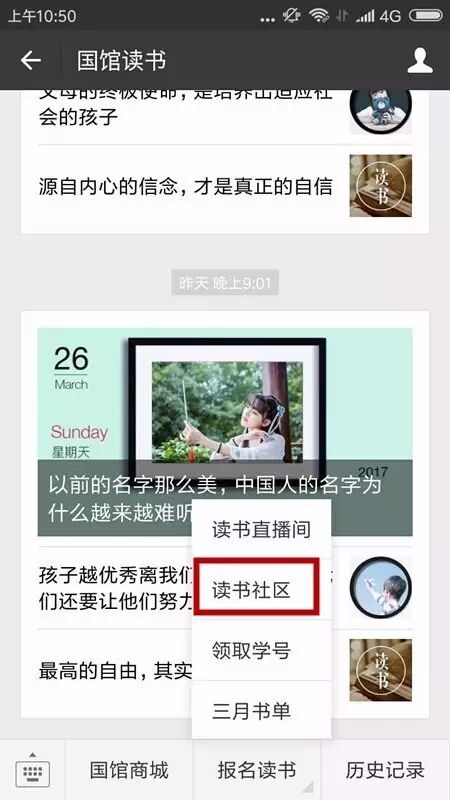 进入【读书社区】