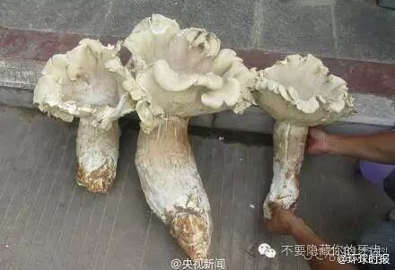 【村民发现巨大口蘑,,让他带回家处置】近日,云南景谷一村民在村边发现三朵同根生的特大野生菌,共重9.6斤,最大一朵高67厘米,胸围61厘米。因不知是否有毒,。经检定此为可食用巨大口蘑,极为罕见。村民已将巨蘑带回家自行处置。