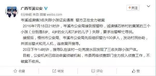 岑溪诚谏镇3名失踪小孩证实遇害 警方正在全力破案