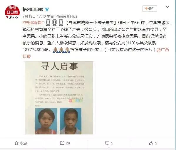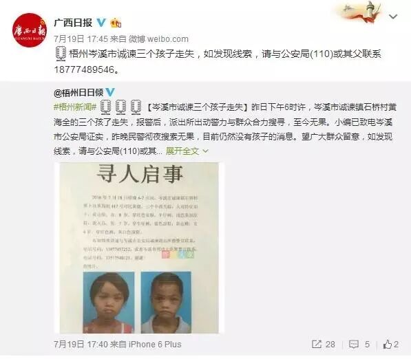 、广西日报、广西日报梧州记者站、的官方微博都发布了这条寻人启事。