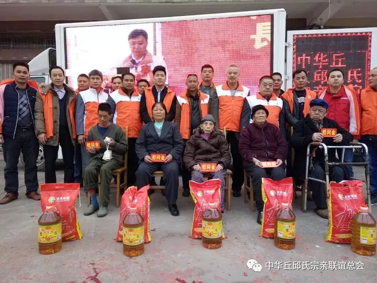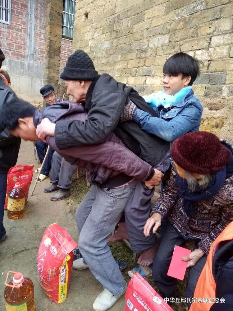 这次慰问的对象,有五代同堂九十高龄还身心健康的幸福老人,还有将超百岁行动不便需人照顾的老者。对行动困难的老前辈我们慰问团成员不厌其烦,亲自挽扶或到床前送温暖送问候。在场的家属和宗亲都流下了感动的泪水。连声说道:" 你们真是邱家的好后代","在你们的身上看到了丘(邱)家的希望","邱家有你们定会更强大更辉煌"!…