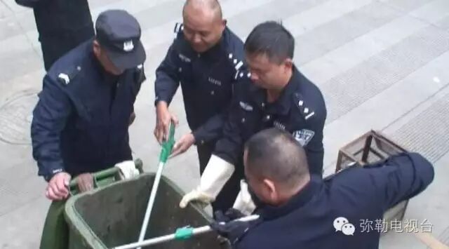 23日早7时20分, 指令,在弥阳镇花好月圆小区一垃圾桶内发现一只小动物,看样子不像是家养的。接警后,民警立即驱车前往。