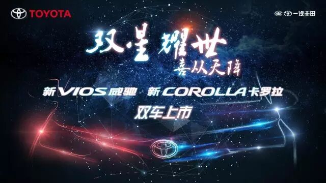 2016年9月28日,一汽丰田新VIOS威驰、新COROLLA卡罗拉双车上市会在广西阳朔耀世发布。活动现场异常震撼,“双星耀世,喜从天降”的主题通过“海陆空”全方位、立体化的环节得以完美演绎,向消费者传递出双车全新升级所带来的惊喜。