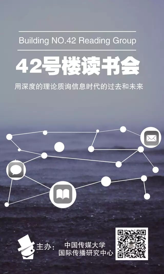 “42号楼读书会”由中国传媒大学传播研究院国际传播研究中心发起。读书会围绕新闻传播学、社会学、政治学、经济学、人类学、文化研究等人文社会科学诸领域的著作展开,由博士和硕士研究生主讲所选著作,并邀请相关老师参与学术讨论。读书会的信息公告会定期在本微信公众号发布,敬请关注。本读书会对一切人开放,无需报名。