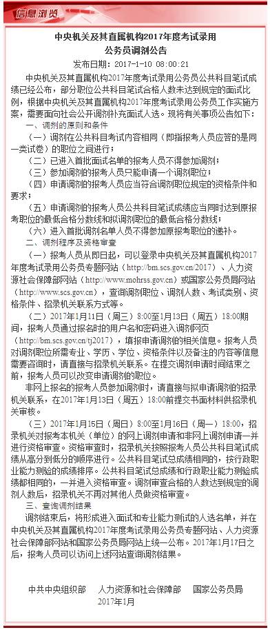 (五)申请调剂的报考人员公共科目笔试成绩应当同时达到原报考职位的最低合格分数线和拟调剂职位的最低合格分数线;