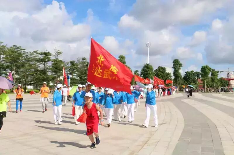8月8日上午,在碧海蓝天下,绿影婆娑的国家4A级景区北海园博园内,来自北海市驻市各部队、市直各有关单位、海城区政府、银海区政府等单位领导和干部职工以及有关社会体育组织人员千余人以绕园博园健身走一圈的形式,共度了一个有意义的全民健身日。