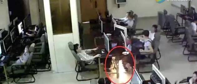 广西柳州一网吧内,一位18岁的高补学生申某在上网,用手机接入电脑充电时,突然触电,该学生当场被电倒,不省人事。120赶到后,该学生已不治身亡。监控拍到了这惊人的一幕!手机充电一定不要拿着玩!
