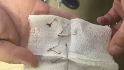 之后没过几天,依然有线头从鼻尖冒出,而且鼻头出现红肿疼痛,无奈之下,杨伙伴跑去医院,医生从她的鼻尖取出了7根残余的隆鼻线。