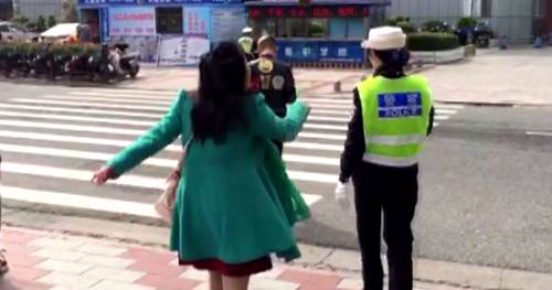 民警再三劝导,只是请她进入学习点学习半小时,不做处罚,黄女士不但不听,反而愈演愈烈,在交警面前撒起泼来,先是对交警跪拜求饶,随后又爆粗口话辱骂交警,接着站起来将自己的电动车推倒在地,当她看见民警拍照取证时立即扶起电动车并侧坐在车上摆POSE。