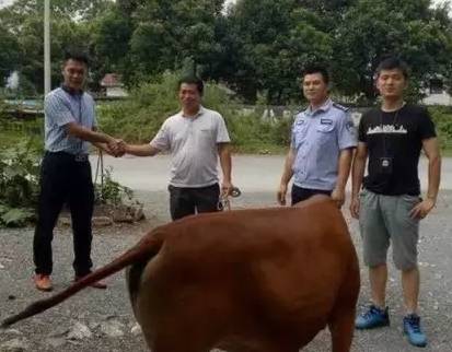 石塘派出所与正在巡逻的枧塘派出所民警取得联系,正好,枧塘派出所当天下午也接到了辖区村民邓先生关于耕牛被盗的报警,查明该条耕牛就是失主邓先生家被盗的耕牛。追回的耕牛退还给失主邓先生那一刻,邓先生握住民警的手非常激动,久久不愿松开,连声说:“真是太谢谢你们了”。