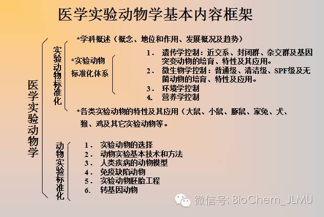 2. 动物实验的标准化:医学生物学研究中,准确地选择、正确地应用各类标准化实验动物。