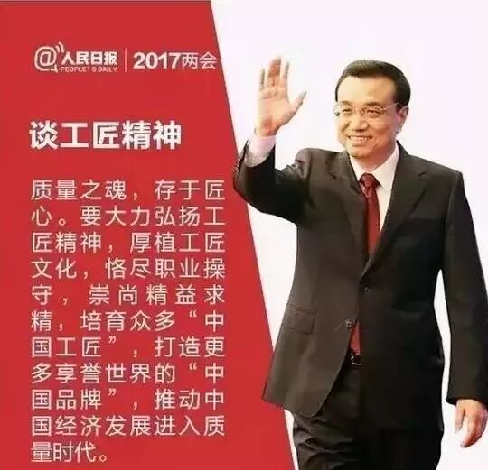 3月5日,第十二届全国人民代表大会第五次会议在北京人民大会堂开幕。,明确指出“质量之魂,存于匠心。要大力弘扬工匠精神,厚植工匠文化,恪尽职业操守,崇尚精益求精,培育众多‘中国工匠’,打造更多享誉世界的‘中国品牌’,推动中国经济发展进入质量时代。”