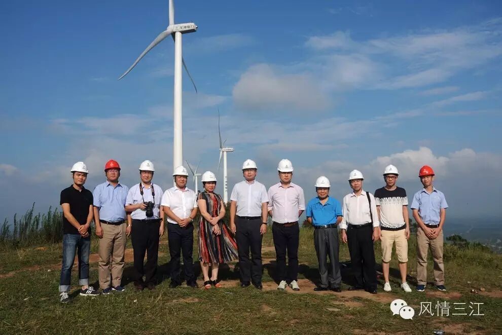 11119月12日下午,三江经贸代表团到横县六景镇霞义山风电场进行参观。霞义山风电场是广西龙源风力发电有限公司建成投产的风力发电场,目前已进入正常投产期和植被恢复尾期。