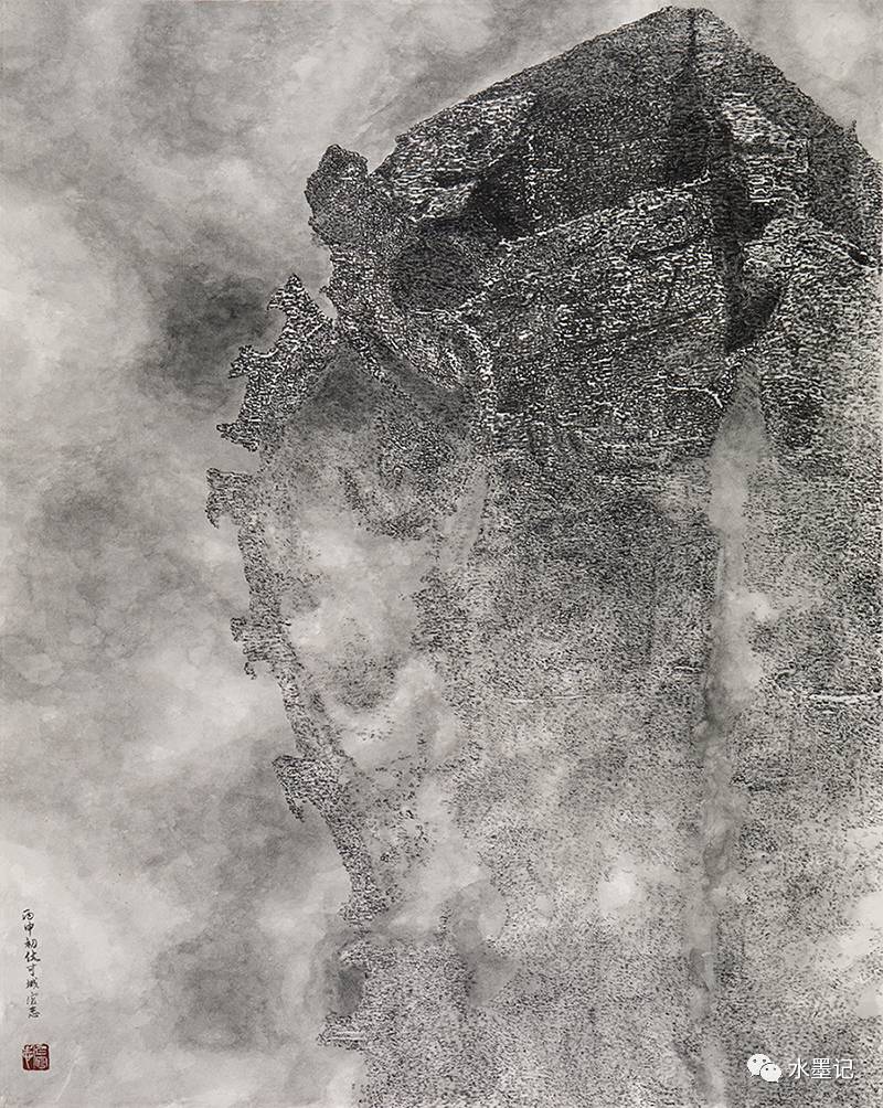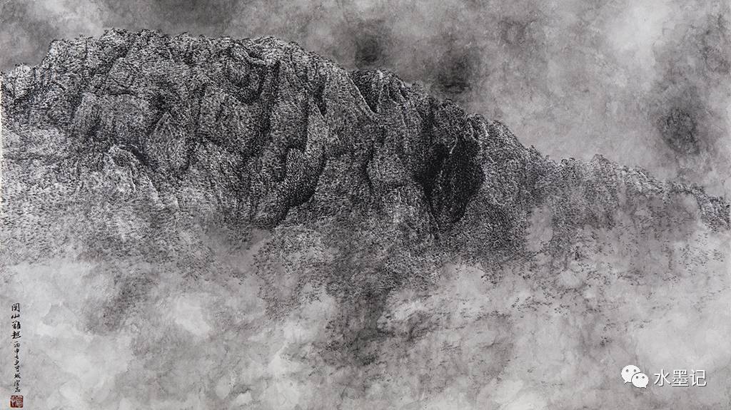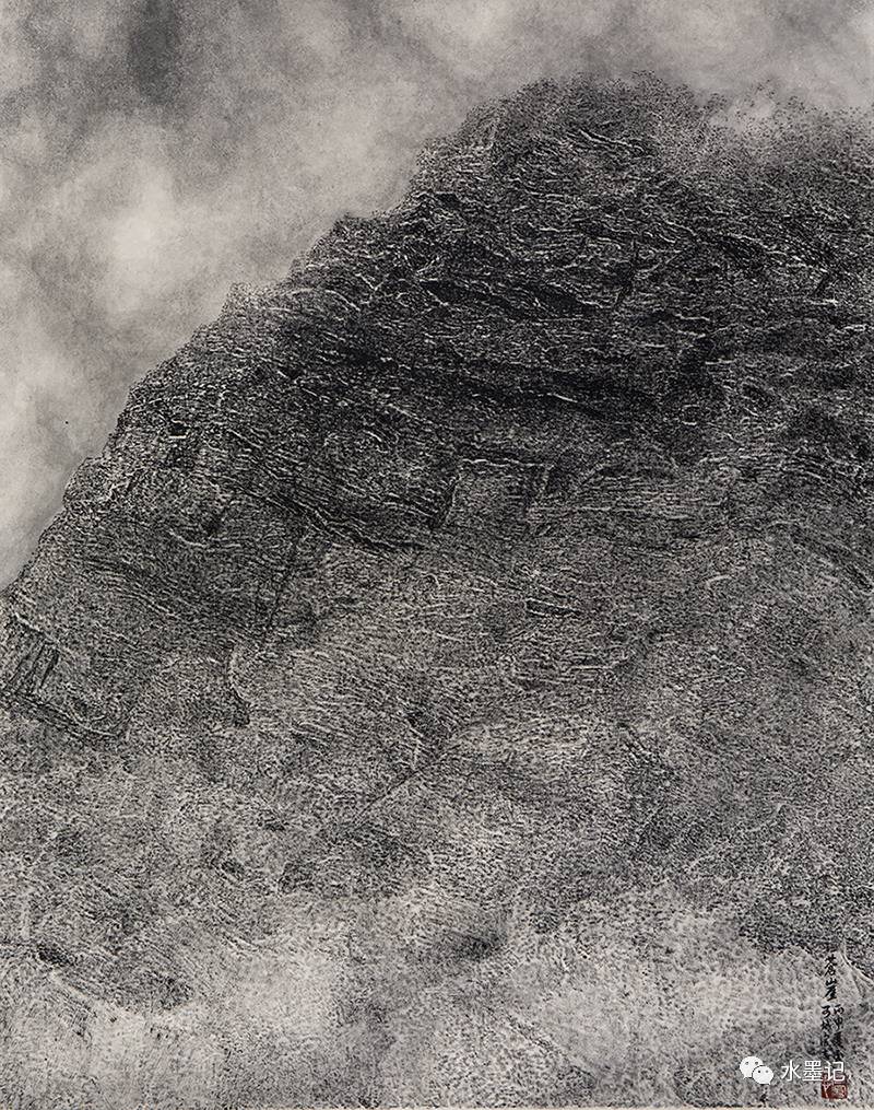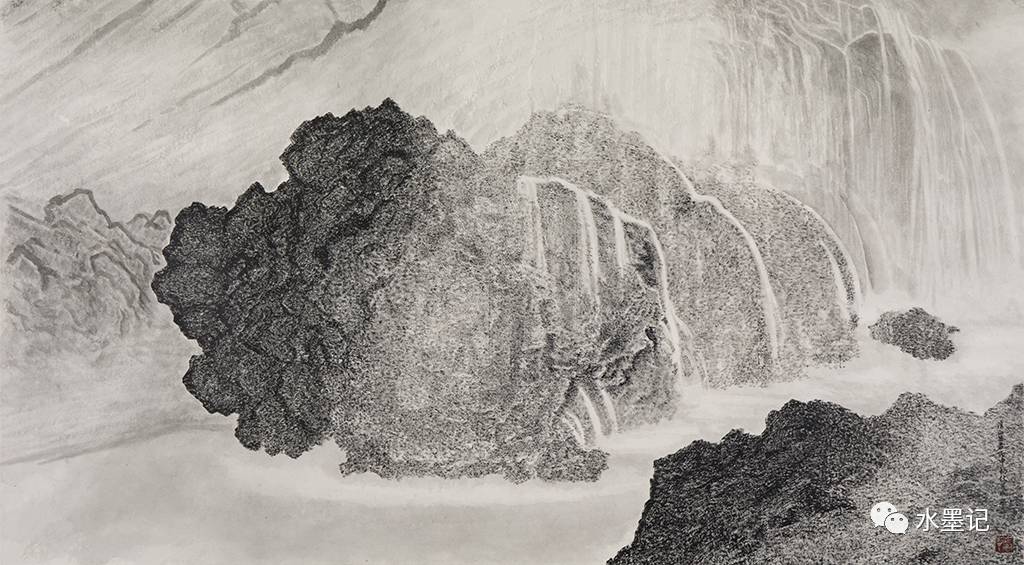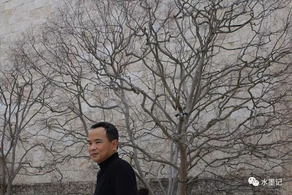 官志,1970年生,自幼习画,在社会工作和艺术修养积累廿年后专职水墨创作。2014年以杰出人才签证赴美,获得艺术基金支持,迅速找到自己的笔墨语言、形成自己的面貌,一跃成为用墨极具视觉冲击力的山水画家,正在画史上开创一种风格。
