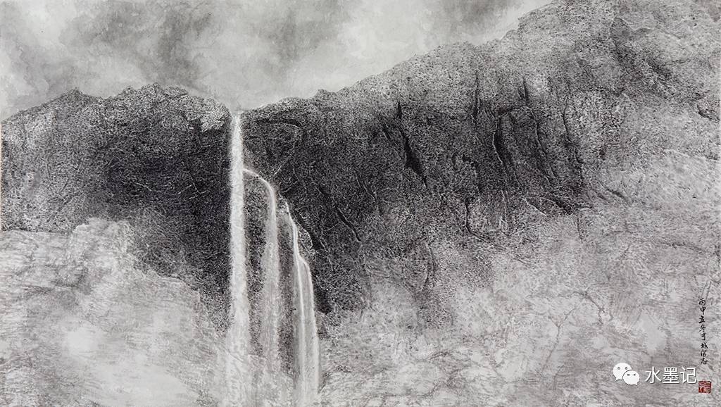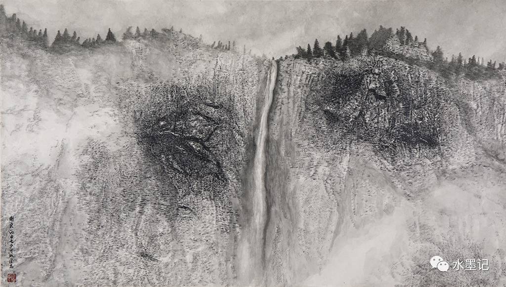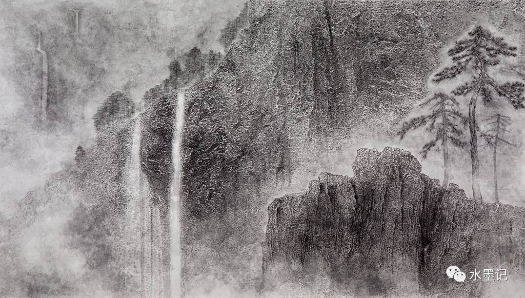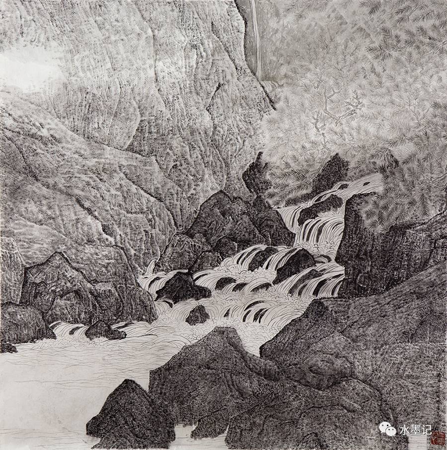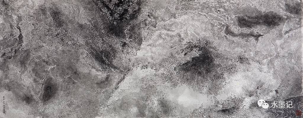 官志,1970年生,自幼习画,在社会工作和艺术修养积累廿年后专职水墨创作。2014年以杰出人才签证赴美,获得艺术基金支持,迅速找到自己的笔墨语言、形成自己的面貌,一跃成为用墨极具视觉冲击力的山水画家,正在画史上开创一种风格。