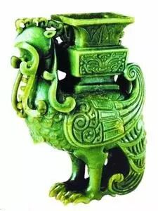 当时的宫廷造办处曾以不同的工艺塑造“天鸡”形象,器型多为“天鸡尊”,有玉器,也有掐丝珐琅,造型奇特,纹饰精美,既像鸡又不像鸡,与三星堆出土的青铜雄鸡相比,更具想象力。