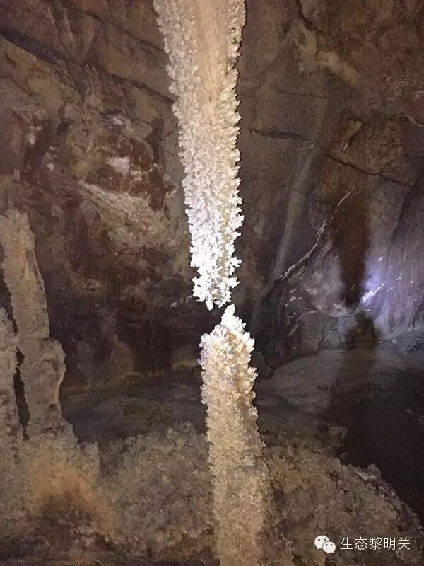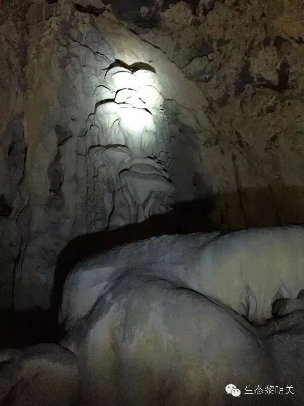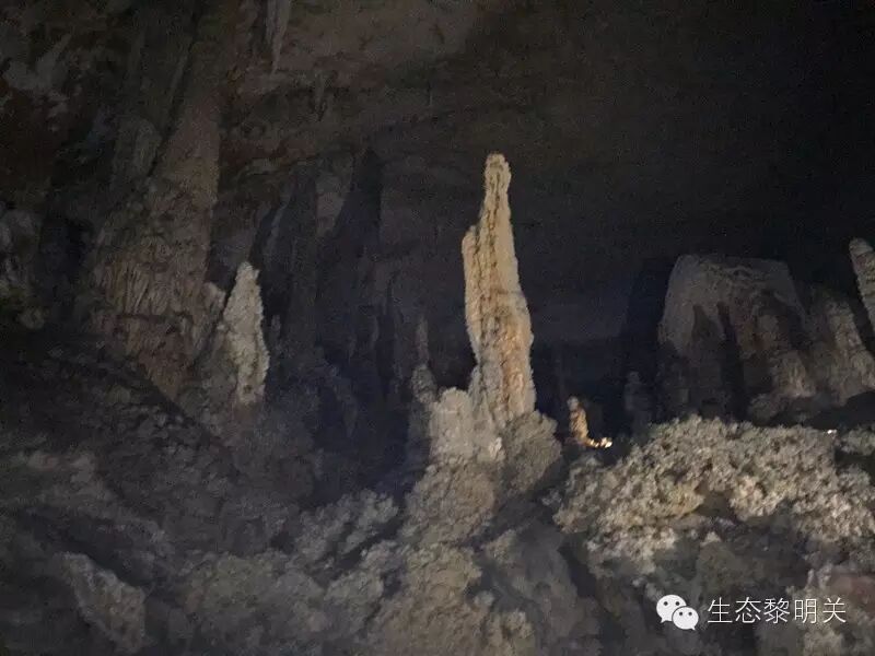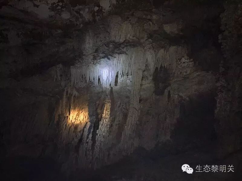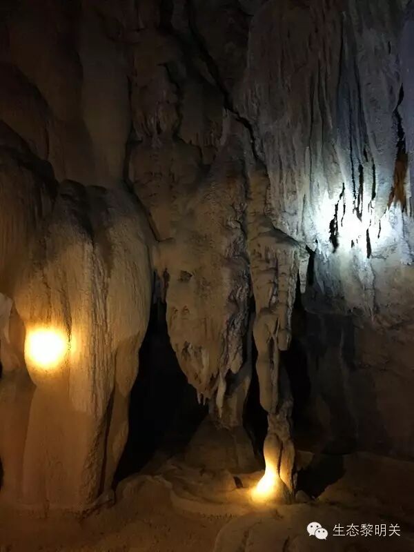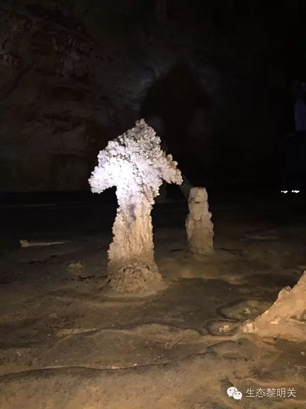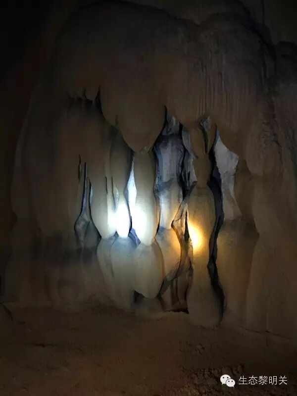 向导讲,由于地下暗河发达,洞内常年流水潺潺,形成一级级“梯田”,十分壮观。