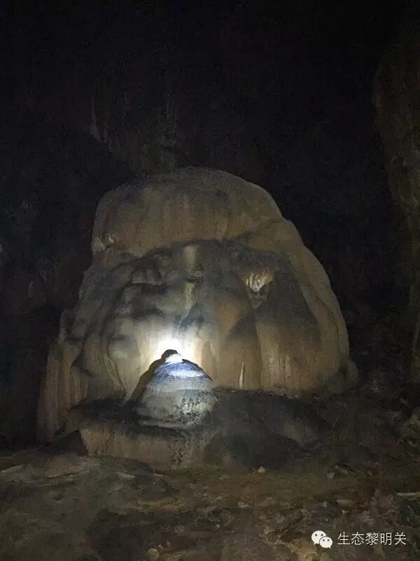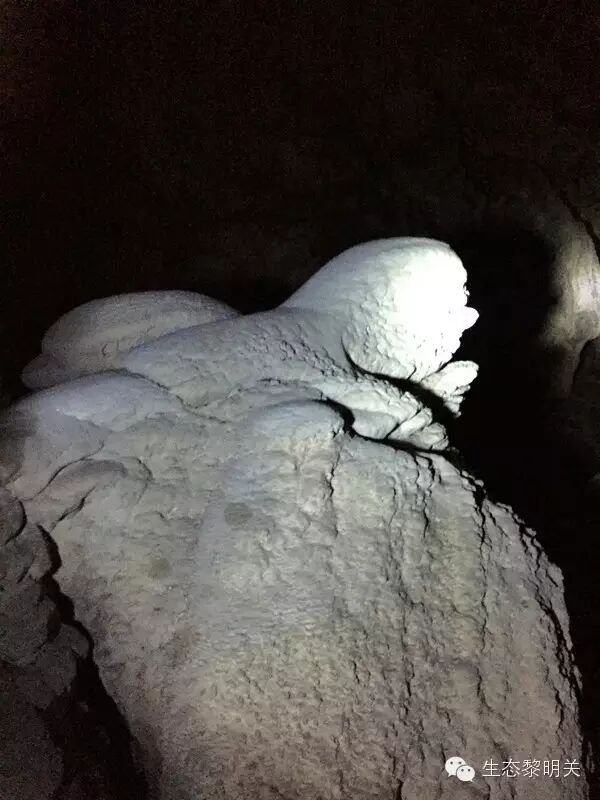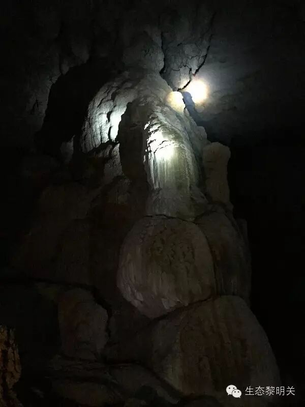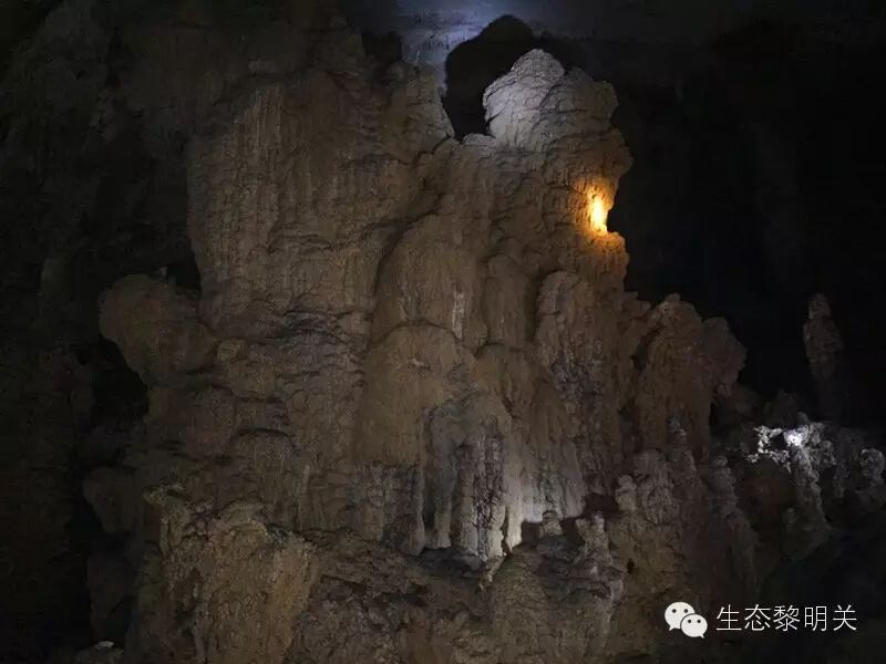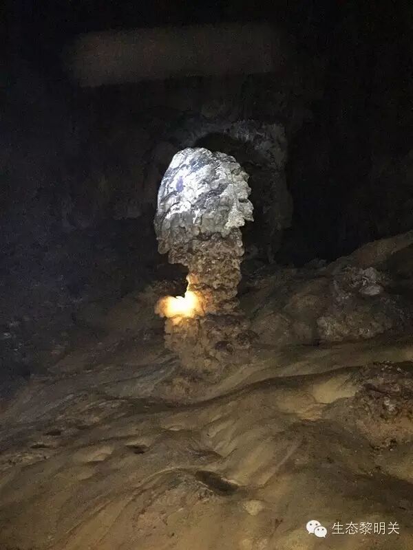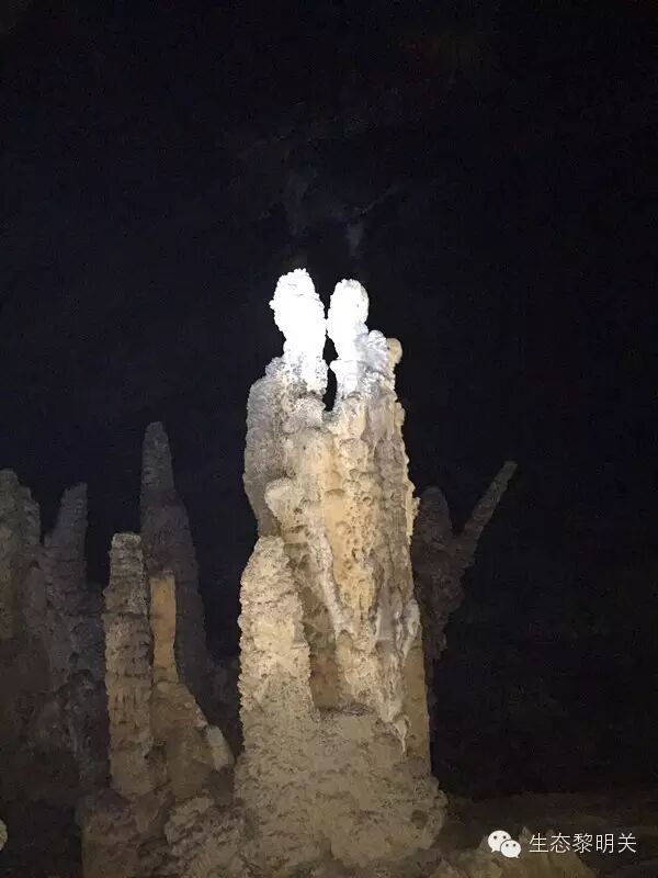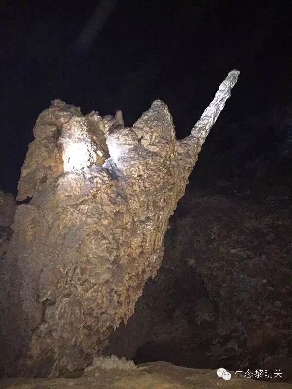 向导讲,由于地下暗河发达,洞内常年流水潺潺,形成一级级“梯田”,十分壮观。