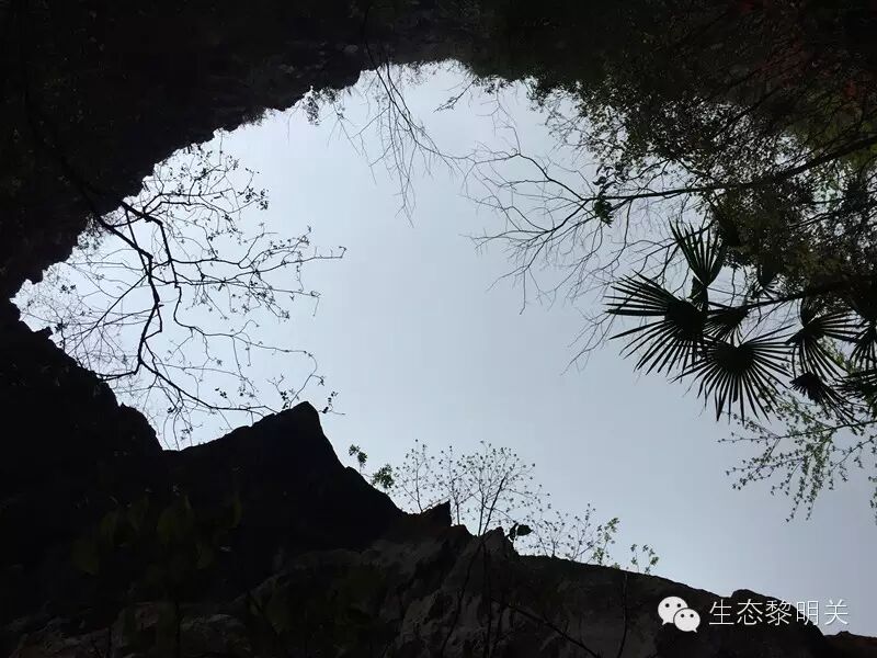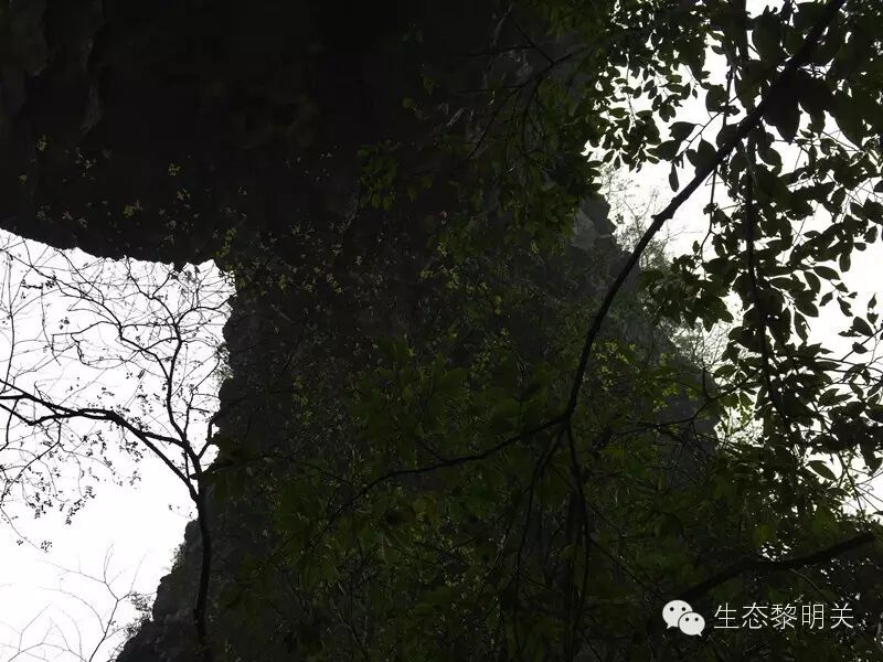 好胜心起,我们执意要近距离一睹天生桥风采,一行人决定向天生桥进发。果然,翻越不知几个山头,又穿过一个溶洞,走了近一个小时我们才到天生桥下。