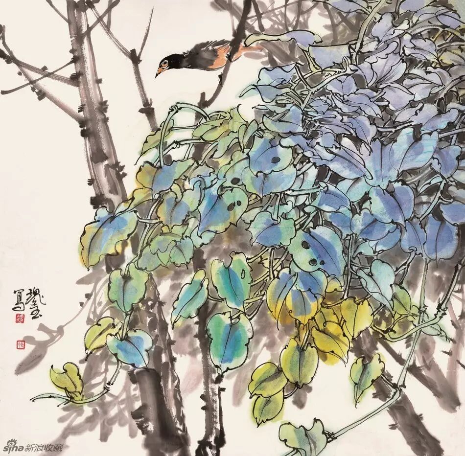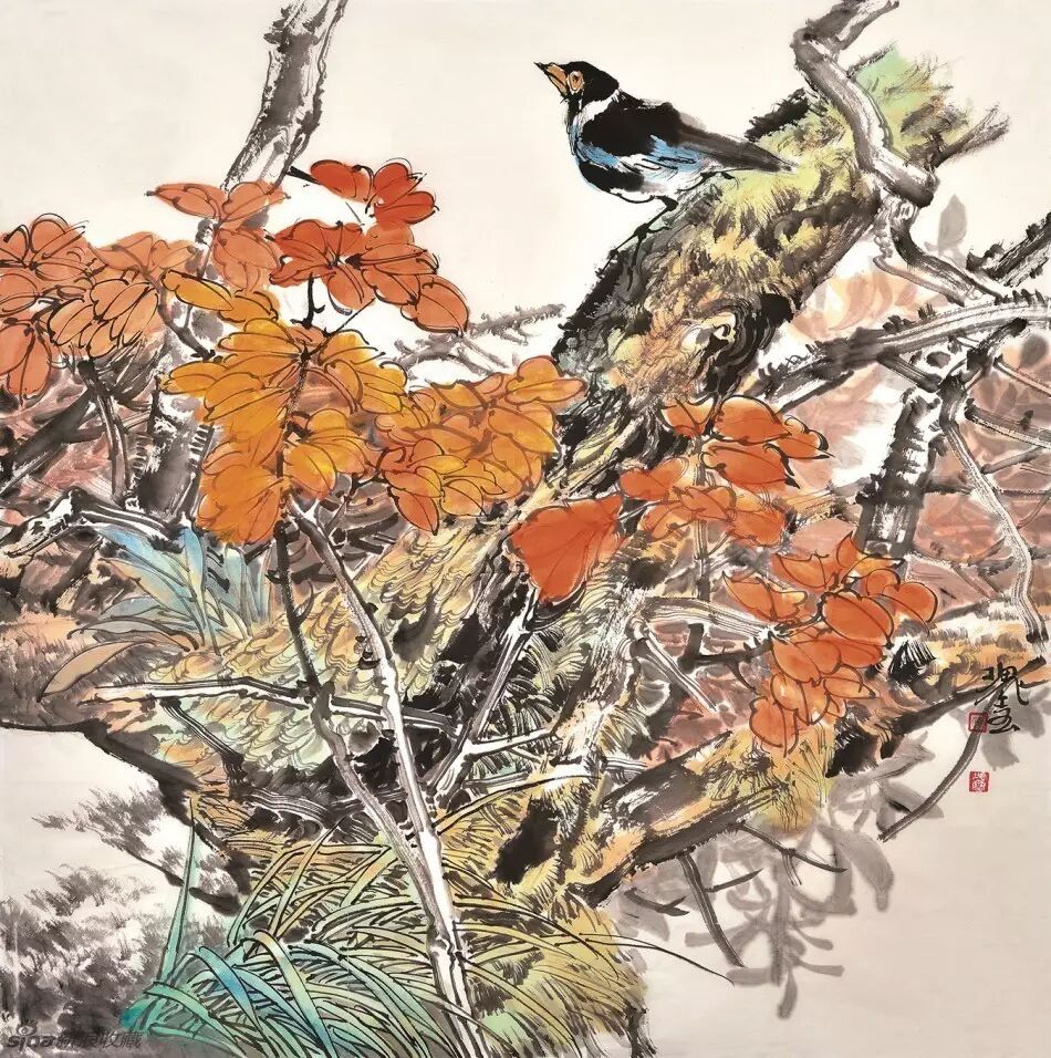 换言之,是宜近看而不耐观,把握有趣而展出效果欠佳。于是当代一些花鸟画家,面对所需,都比较重视画面的视觉感受,取向于繁茂、厚密的“大花鸟”。