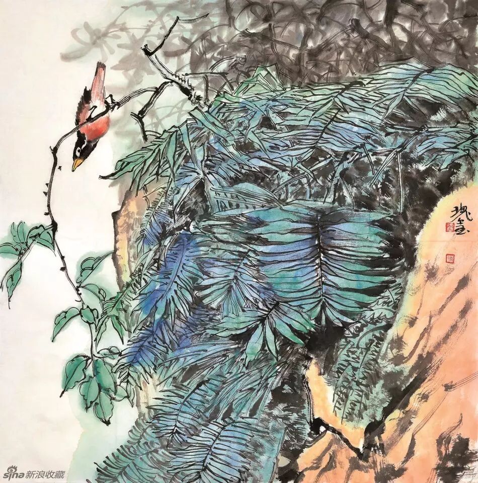 郑瑰玺的写意花鸟画就是这种取向。他的作品是面对生活,写生自然,交大山野谷,幽壑曲涧、茂竹修林与繁花鸣泉交织在一起,不同于传统萧疏闲逸定势,把花鸟与山水结合起来,融花鸟色彩烂漫、用笔灵妙的特点,与水墨华滋的山水之中。