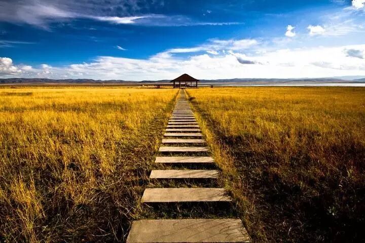 尕海湖位于碌曲县境内海拔3400米的尕海草原上。沿着草原走近湖泊,湖边修建了一座二层的小楼,楼顶是开放的瞭望台。看碧海蓝天、飞鸟捕食,你会了然天人合一的感觉。